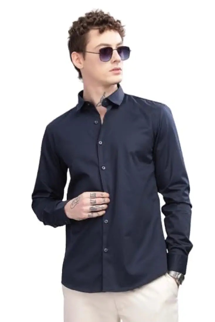 Shiffon Shirt For Man Cotton Formal Full Sleeve Spread Collar Size M Medium L Large Size Xl Extra Large Designed Two Colour Dark Blue & Sky Blue